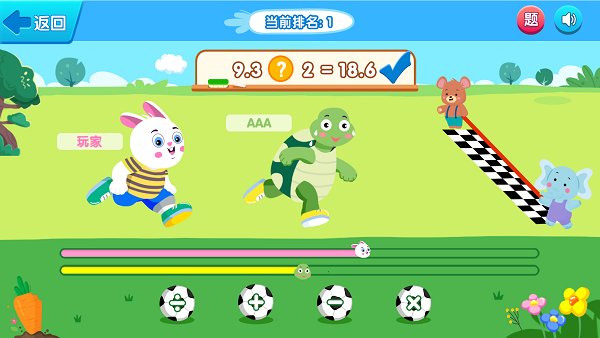 2.营造紧张、刺激的氛围,通过选择正确的运算符号为自己的角色加速度。培养孩子的符号意识,将对数学口算的要求与游戏机制相结合,提高孩子的速度与正确率,告别枯燥练习,更有趣!