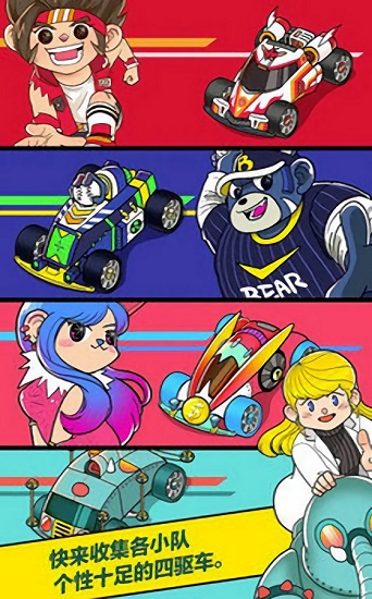 3.创建一支四驱小队来参加比赛,在赛场中还能发动角色特有的技能,展现华丽无限的奔驰特效,让你的视觉体验更劲爆。
