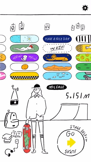 1、画风比较的简约,独特的手绘活动,各种各样的滑板,让人选的眼花缭乱。