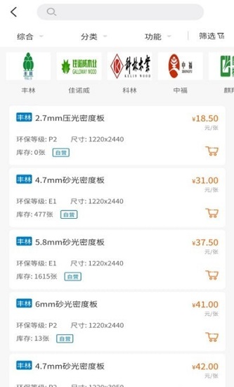 2、人造板材交易服务应用,提供丰富品类的板材资源信息,还可以查看全国行业的产品情况,交易方便;