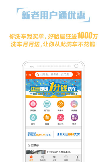 1.下载好胎屋APP,洗车只要1分钱!洗车网点多多,无需跑远!附近就可!