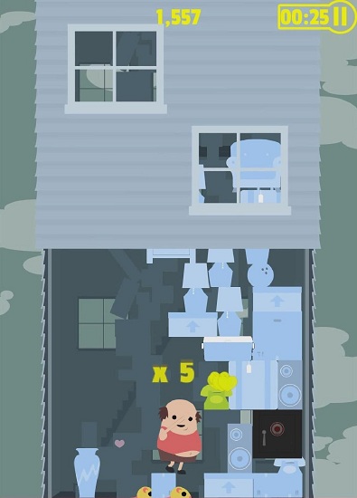 是一款超现实的闯关小游戏,在现实中是否遭遇这样的事情呢?喜欢疯狂的购物,买买买,最后并不是那么想要了,是家用电器,还是服装,食物呢?从空而降大量的物品,你需要借助他们拼命向上走。
