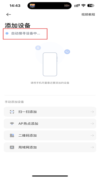 3、进入该页面内,呈现自动搜寻设备的提示,需耐心等待。