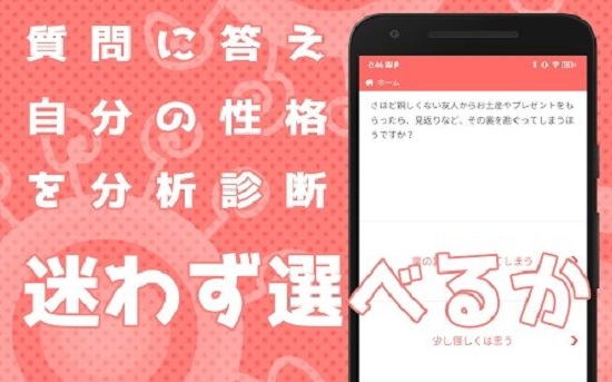 1、玩家根据回答的问题判断自己的性格,并可以邀请朋友测试彼此的性格。