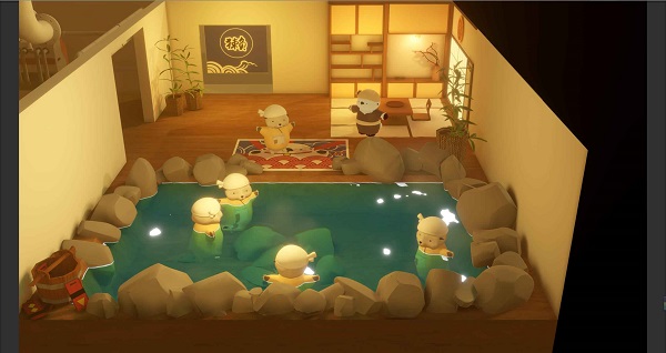3、将整个温泉的环境来进行一个全面的布置,整个的场景能够来自由的搭配;
