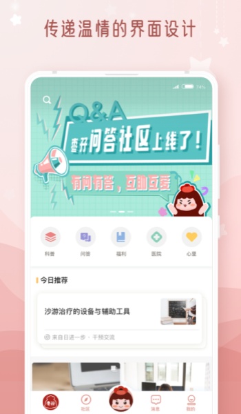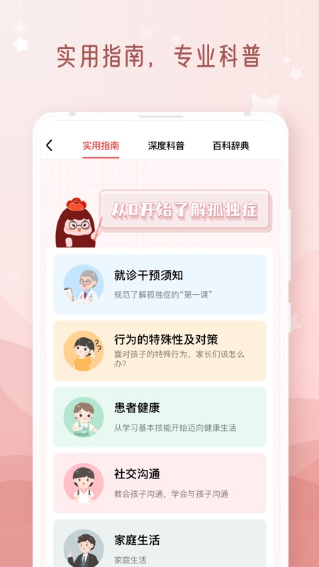 知识百科、筛查量表、法规政策、机构查询、心理支持、多元社区等便捷功能全方位覆盖患者家庭的核心需求,陪伴患者人群的全生命周期。