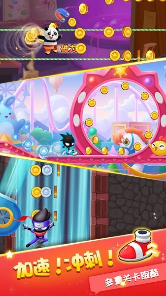 4、风格各异的游戏场景,魔法世界,童趣糖果屋等等,可以尽情体验每一段精彩的跑酷旅程。