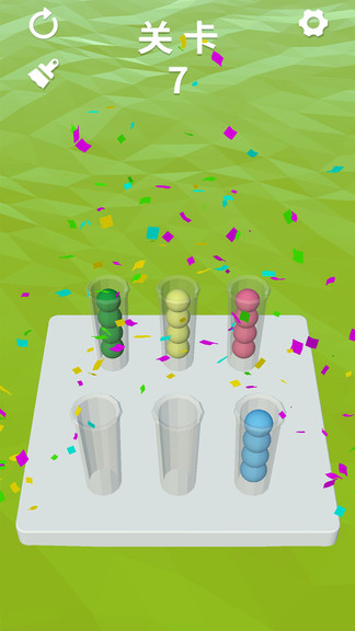 游戏画风精美,玩法休闲有趣,玩家要将相同颜色的小球放置到同一个杯子中,非常考验玩家的反应能力和脑力,快速的将小球放在对应的杯子中,集中注意力。小球下落的速度会逐渐的加快,增加自己的反应力,超多趣味的游戏关卡等待玩家前来尝试和挑战吧!