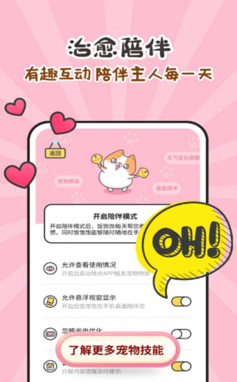 1、拥有一只住在你手机里的小宠物!看它每日遛弯散步,撒娇卖萌,带给你无数惊喜,让你的手机充满爱的氛围;