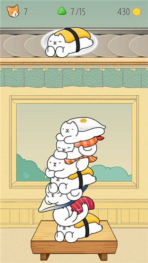 2、激萌的原创场景造型,可爱的动画元素,挑战堆叠寿司猫。