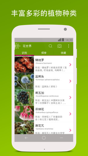 花世界是一款花卉的百科全书,全面介绍了地理分布、应用价值信息,喜欢花卉植物的朋友们赶紧下载吧,让你成为花卉植物世界的科普达人,并且还可以收录附近植物花卉,进行分享互动,你还在等待什么,赶紧下载吧!