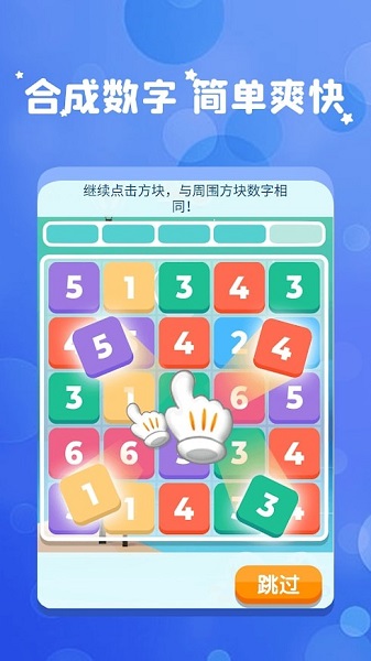 2、将三个相邻的数字相加,努力的合成更大的数值,完成大量的挑战任务。