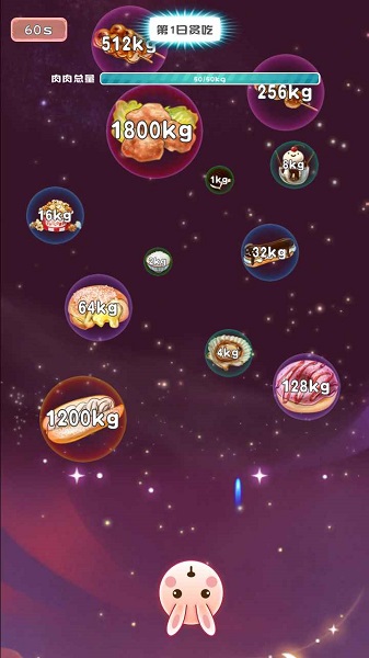 在游戏中,通过左右移动,躲避和射击携带脂肪的食物,消灭脂肪可获得随机道具,加强火力,增加游戏趣味性!游戏为关卡制,脂肪的KG数越多、体积变大、移动速度变快。小兔子在不断的升级与进化中,也在不断增强。