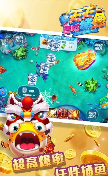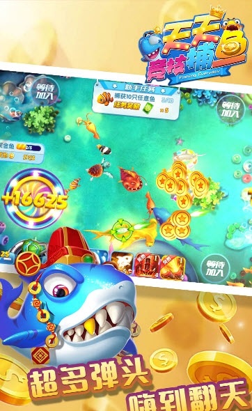 天天竞技捕鱼,千万人在线捕鱼竞技,全新真人联机捕鱼玩法,实时黄金鱼中在线pk捕捉,神秘宝藏畅享不停,游戏为玩家推出了超多不同的捕鱼场区,玩家可根据自身实力在不同的模式中体验趣味的捕鱼玩法,感兴趣的玩家可以下载体验一下哦!