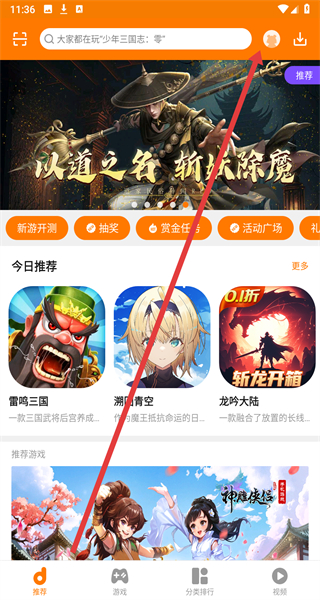 1、在进入到当乐首页中时,可以点击上方头像区域,进入我的个人主页。