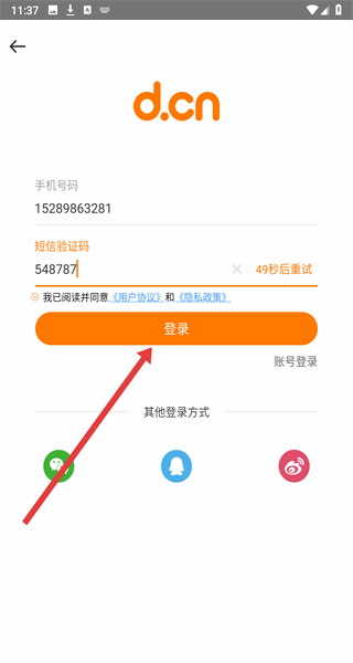 4、在填写好获取到的验证码后,点击登录按钮,即可完成登录。
