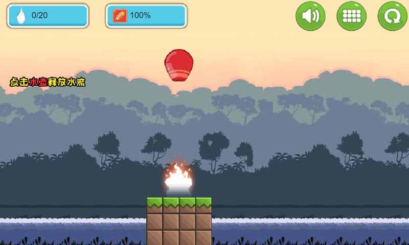 利用的是生活中比较实用的题材,利用水源去消灭起火点,开放式的成功要求,并不是只有一种才可以灭火的方法哦;