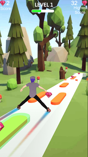 你是一个优秀的直排轮选手吗?在压力的状况下能否表现良好呢?在这充满了无数挑战性的虚拟世界中炫耀你的技术吧,这些障碍会随机分布在赛道上的不同位置。左右滑动以轻松的方式改变男孩的移动方向,并避开障碍物吧。