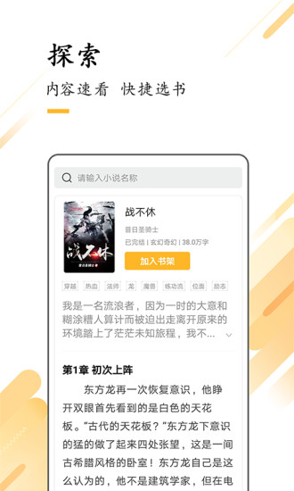 探读app是一款超级好用的看小说软件,不仅有超多热门小说可以读,而且还可以读取手机里的文档,可以在别处下载一键添加在书架上,让你看小说拒绝繁琐的流程,直接打开软件就能观看,感兴趣的小伙伴快下载体验一下吧!
