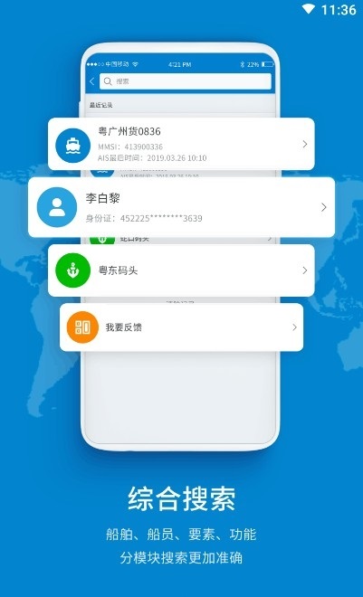 2、能够一键实时定位,全部船舶与船员的实时定位可以一清二楚;