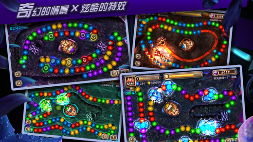 天天祖玛ios是一款休闲游戏,游戏画面精美,场景变幻多端,火山历险、夜光花园、深海领域、神秘洞穴、奇幻蘑菇五大场景带给你全新炫酷体验,同时要想获得高分是需要充分开动大脑的,快和你的小伙伴一较高下吧!