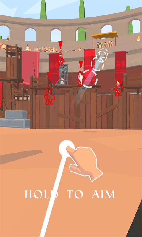 你又回到了罗马的角斗士罗马斗兽场。当你走上竞技场的中央舞台时,兴奋的人群正在为你大声欢呼。这是一场殊死搏斗-你想为生存而战,否则这是你最后的表演。找到最佳位置开始。瞄准你的目标,把飞行武器移向正确的方向。往上走,再往上走,直奔主题。给你!你的对手被打败了!