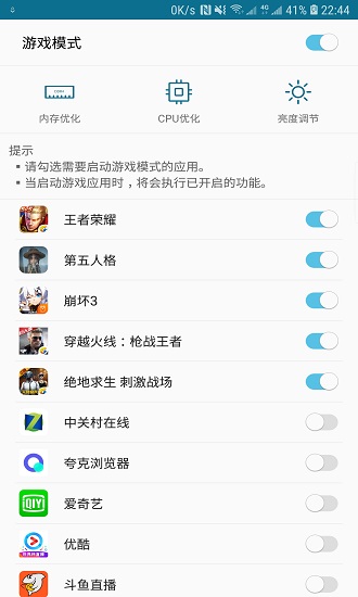 1、这款应用对待机以及游戏进行等优化,使之保持系统最佳。