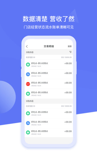 多家门店统筹管理,账目清楚、营收了然、数据分析、智能参谋、语音保障、操作流畅、使用便捷,是商户收款的好帮手!