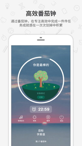 基于番茄工作法(番茄钟)把时间抓回自己手中,收集丰富的图鉴,并专注于生活中更重要的事情上,用你专注的时光,一点一滴茁壮你的知识库,那现在就放下手机,种出专属自己的专注森林!