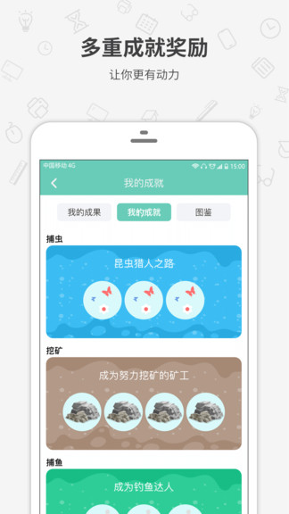 用户只要坚持完成自己添加的任务,就可以获取app提供的成就;