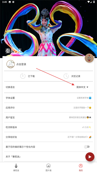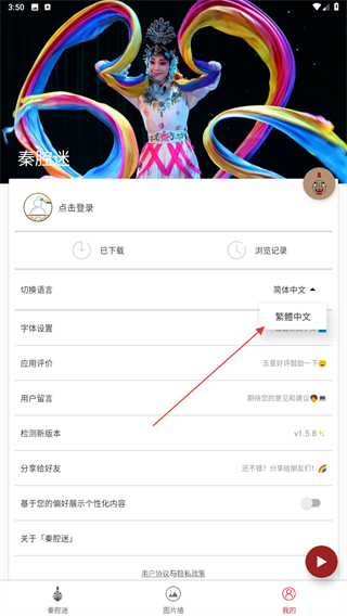 1、打开秦腔迷APP,进入首页点击右下方我的图标。