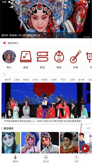 1、青春有秦2025天水秦腔演员演奏会,功能/板块:角儿、曲谱、剧目、唱段、伴奏、流派、精选唱段。