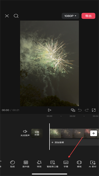 3、在底部的工具栏中,点击字幕的选项,进入字幕界面。