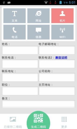 二维码自动生成器app就是这样一款可以制作二维码名片,二维码信息的软件!可以将文本,网址,名片,电话,信息和wifi热点制作成二维码图片,可以随意分享到微信朋友圈,微信好友,微博等!赶快来制作属于你自己的二维码图片,让你的微信好友羡慕一下,提前进入信息时代!