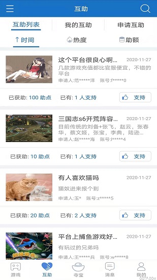 3、在这里,用户可以一键申请互助,从而能够快速发布各种互助内容,获得更多互助点;