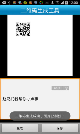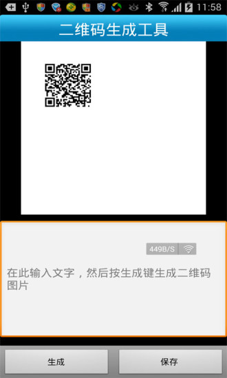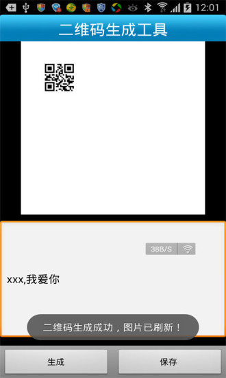 二维码生成工具app是一款非常实用的二维码生成工具,只需要在文本框中输入文字,点击保存和生成,就可以生成一个独特的二维码。收到二维码的人只需要用二维码扫描软件轻轻一扫,就可以接收到二维码里蕴藏的话。