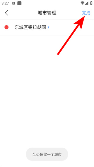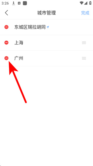 3、点击需删除城市前的红色减号,发起删除的操作。