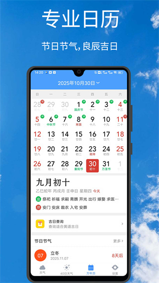 提供黄历、宜忌、节假日查询。详细全面的周历、月历信息,集节日节气(二十四节气)、节假日安装于一体,传统节日随时随地查看。
