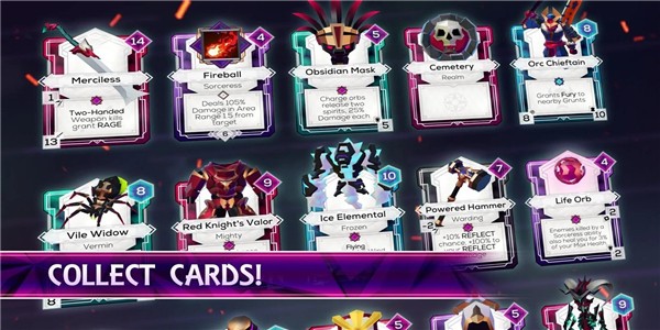1、 这是一个背景设置比较独特的地下城手游,在这个世界里面,用户们需要尽自己最大的努力去收集各种不同属性的卡牌;