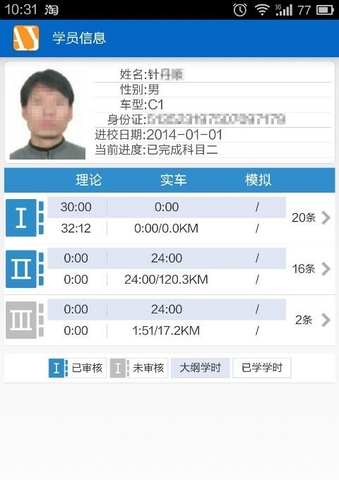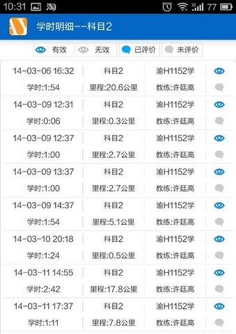 3.点击科目学时后面的学时条数进入学员该科目学时明细查询
