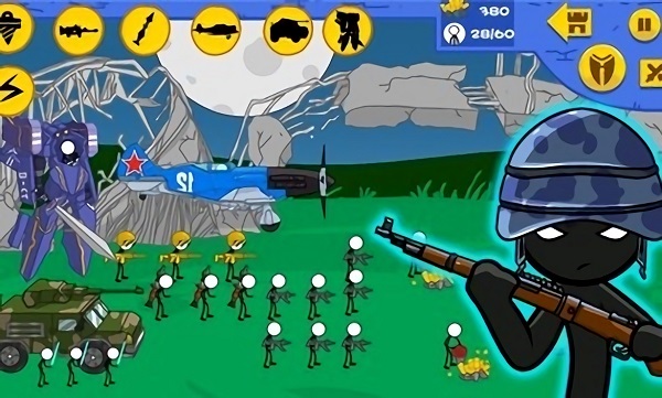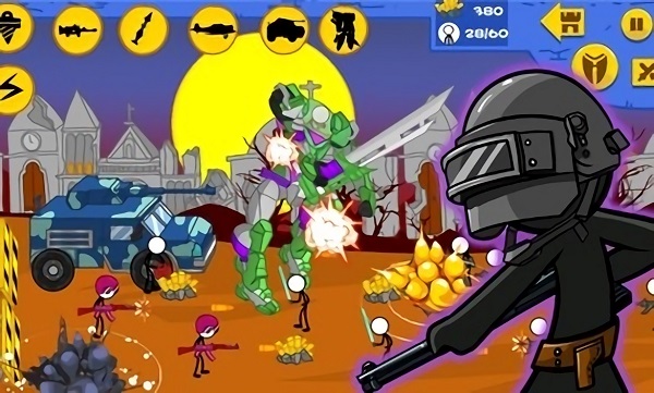 刺激好玩的冒险竞技挑战游戏,未来感十足的画风和场景,全新的火柴人乱世纷争,激情刺激的无锁定战场,组建部队联盟,冒险刺激操控战术,打造优秀的战队,全新的策略战术,任你掌控自如。以火柴人为主角制作的一款横版策略动作冒险类手游,本作将会带玩家走进火柴人的王国中开始一场全新的冒险,除了丰富的动作要素之外,玩加还能够招募更多的士兵来组建起自己强大的军队,收集各种资源来强化自己的部队和英雄,带领你的军队征服不同的势力,并且最终成功的统一火柴人王国。