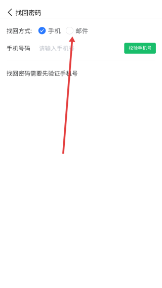 2、进入找回密码界面,选邮件找回方式,挑战到邮件验证页面。