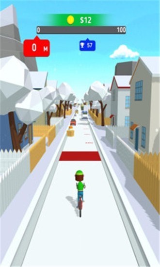 玩家要驾驶自行车完成赛道挑战,收集路上出现的各种道具来获得分数,注意往来的车辆左右闪避,灵活的在道路上行驶,为了更好的应对麻烦你还能强化自行车升级属性,用最好的状态去应对所有麻烦.
