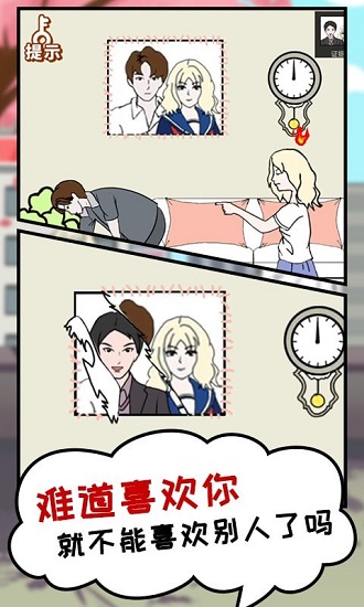 1、每个关卡给出一个终极目标,渣女劈腿的证据被藏起来了。