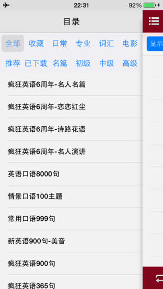 8.除了自带的三大部分的内容外, 还可在线下载其它资料, 而且, 这些资料全部都是语音+同步课文