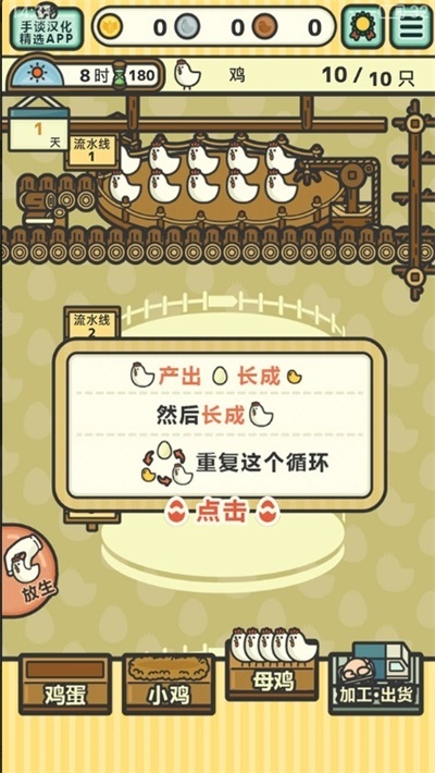 -完成任务获得更多的饲料,不能让小鸡们饿肚子哦。