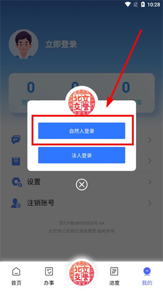 2、在弹出的登录方式弹窗中,点击自然人登录选项,跳转至登录页面。