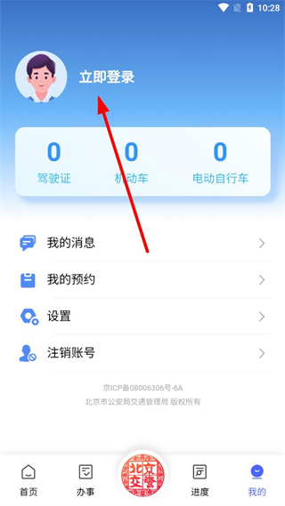 1、打开北京交警app,点击底部导航栏中的我的选项。