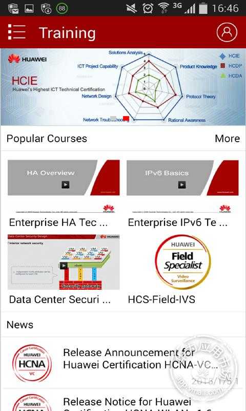 华为培训app,为企业客户、合作伙伴、院校学生、ICT从业人员量身定制的移动学习平台,提供随时随地、互动自主的个性化学习服务。专业的华为讲师,结合丰富的实验资源,对华为产品、技术、解决方案等进行专业讲解和引导。根据技术领域、培训名称等,您可以方便快速查找到您所需要的培训。