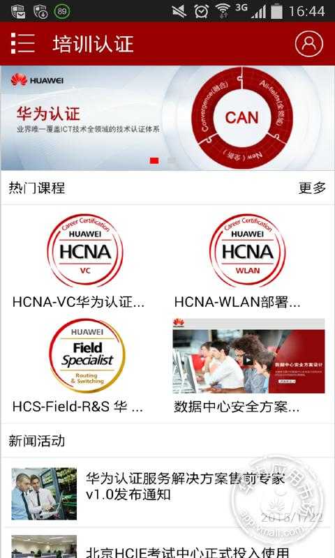 华为培训(huawei learning)是由华为推出的一个企业在线技术支持和在线学习app,满足了用户随时随地都可以学习的需求,包括热门课程,资讯展播,新闻公告等多个栏目,欢迎下载使用。